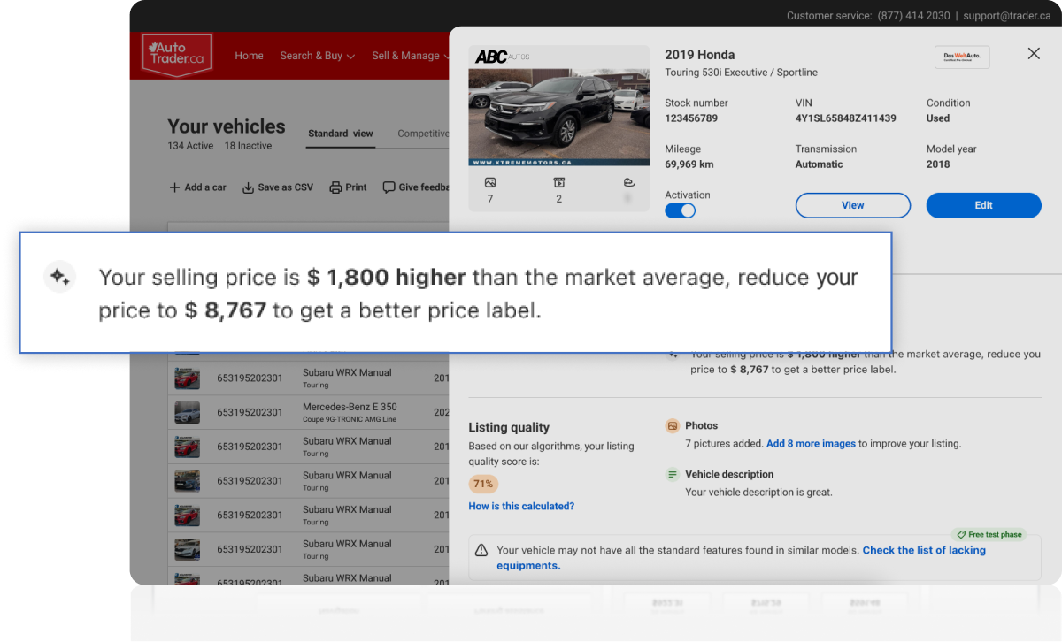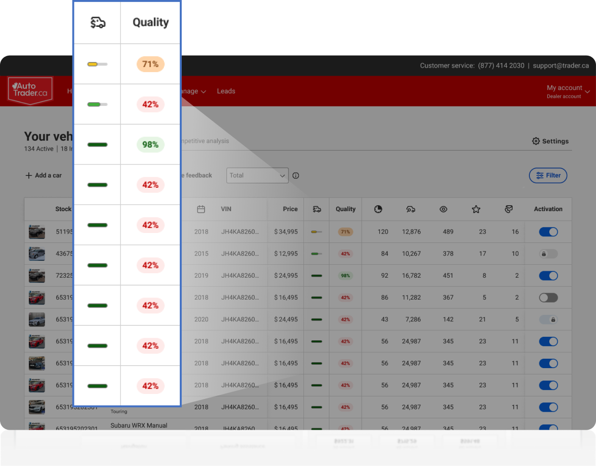 Dashboard goes the extra mile to ensure your inventory listings are at their best – and when they aren’t, you’ll get notified. Highlight key features, manage images, and improve overall listing appeal directly from Dashboard.